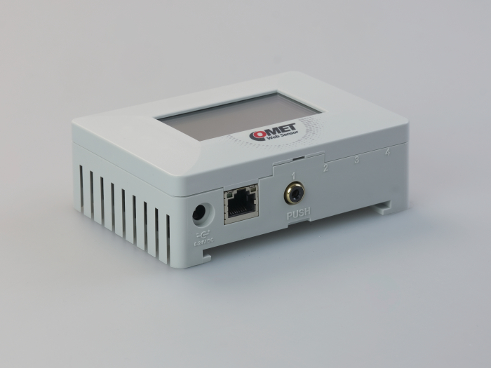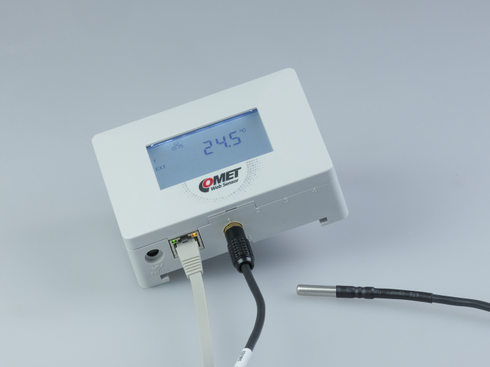设备配备背光 LCD 显示屏、完整的报警信号(LED 和声音)以及 PoE 支持。其重要功能之一是可通过 Web 界面对 Pt1000 探头电缆误差进行软件补偿。